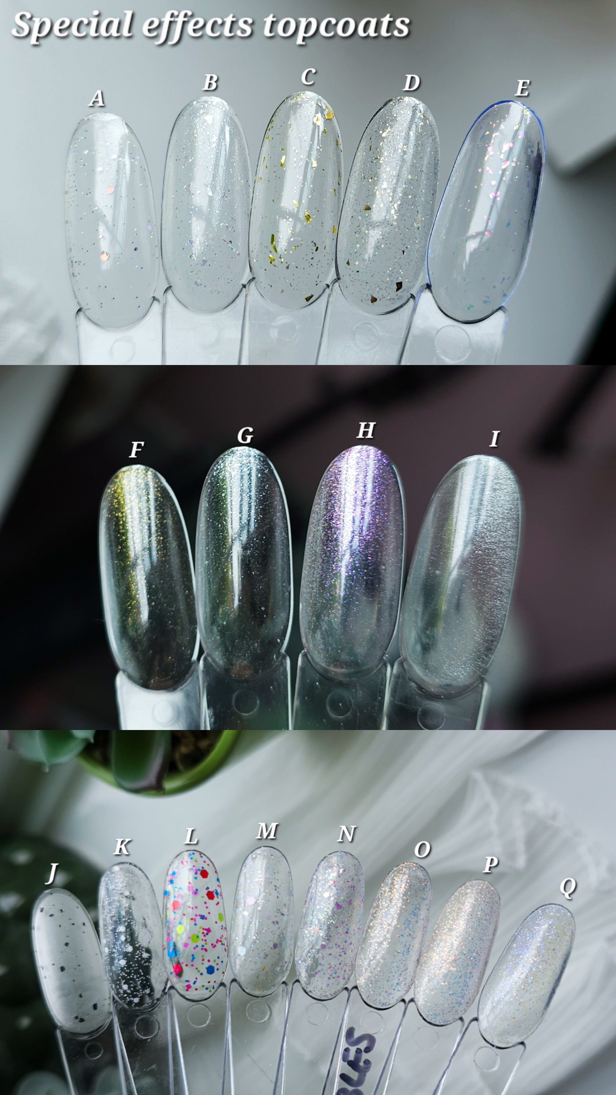 CHROME POWDERS - Each chrome powder is shown over five base colours (from left to right: milky white, light pink, bright pink, blue, and black). Each row features two chrome powders, displayed the same way for easy comparison.